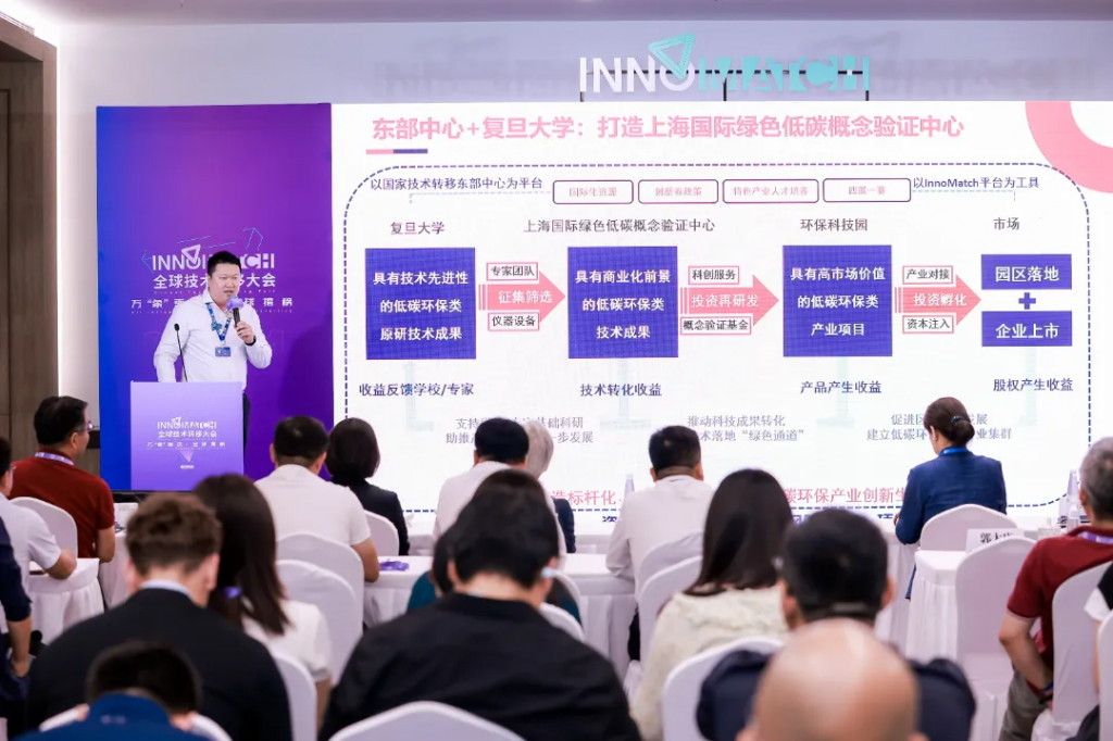 国家技术转移东部中心产业服务部总监孙剑峰博士围绕绿色低碳领域进行主题分享,东部中心与复旦大学环境科学与工程系共同成立了上海国际绿色低碳概念验证中心,汇聚了众多环保领域的专家和创新团队,通过联合研发、技术孵化、项目验证等方式,推动绿色技术的产业化。